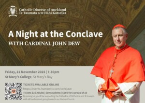 A Night at the Conclave with Cardinal John Dew at St Mary’s College, 7.30pm, Friday 21 November. Discover the mystery of the Papal Conclave through Cardinal John’s unique insights. All proceeds support the Cathedral of St Patrick and St Joseph. Details & tickets: https://events.humanitix.com/conclave